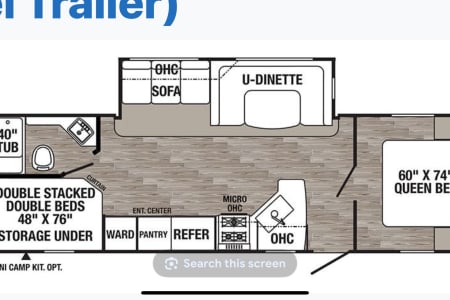• Bathroom with bathtub/shower combo for easy clean-up after a day outdoors