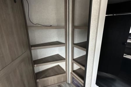 • Solar panels (w. 2x battery) + 52-gallon freshwater tank = off-grid ready