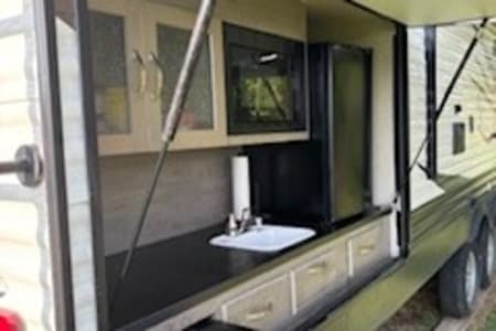 Looking for the perfect family getaway camper? Our 2019 Palomino Puma is your home away from home-ready for adventure, relaxation, and unforgettable memories. This clean and spacious travel trailer comfortably sleeps up to 7 people and is fully equipped for your next camping adventure. Just imagine your family trip being a chance to slow down and enjoy life together in the great outdoors. The day starts with the sun rising through the trees and the smell of breakfast cooking outside the camper. Kids run barefoot through the grass, exploring nature, collecting sticks, and laughing as they chase each other around the campsite. The camper is the perfect home base-comfortable, clean, and fully stocked. The kids love having their own bunk beds, and parents appreciate the private bedroom and kitchen that makes meals easy. Afternoons are filled with hiking, swimming, fishing, or just lounging in camp chairs with a good book. As the sun sets, the family gathers around a campfire and roast marshmallows, share stories, and watch as the stars appear one by one in the night sky. With no rush, no screens, and no schedules, everyone feels more connected- to nature, and each other. At the end of the night, they climb into their warm beds inside the camper, listening to the quite sounds of the forest. It's not just a trip-it's a memory that last forever.