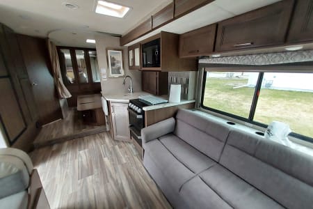 Inviting Class C will enhance your journey wherever you decide to take her. Has all the comforts of home. 2 TV's one inside and one outside with sound bar. Kitchen comes complete with coffee pot (k cups), air fryer, ice maker, plates, pots and pans, etc. For the outdoors there is a folding table, chairs and many other items. The unit is clean and without any mechanical problems. The generators will run everything in the RV. The backup camera is very helpful when backing into a campsite. I will work with you to help make your adventure the best. I will except requests for different things within reason.