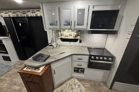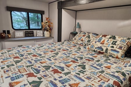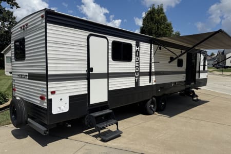 Enjoy the comfort of home while surrounded by the beauty of the outdoors in this luxurious 2022 Keystone Hideout 38FDDS Park Model. Perfect for extended stays, seasonal camping, or a family getaway, this camper offers the ideal blend of space, style, and convenience. With two slide-outs, you’ll enjoy a spacious front living room with large windows, comfortable seating, and an entertainment center for relaxing after a day of adventure. The fully equipped kitchen includes a full-size refrigerator, three-burner range with oven, microwave, and plenty of storage, making meal prep easy. A private king bedroom offers generous wardrobe space and a sliding door for privacy, while the convertible sofa bed accommodates additional guests. The full bathroom features a residential shower, vanity, and flushing toilet, and central air and heat provide year-round comfort.