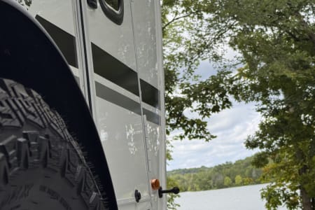 Whether you're heading to the Smokies or finding serenity closer to home, this Luna Rover blends minimalist charm with upscale comfort. Our lightweight Luna Rover features A/C, electric fireplace, 32" TV/DVD, Bluetooth stereo, a built-in toilet, outdoor kitchen with all the basics, an awning, rug, two chairs, and even a small table to share.