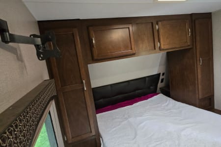 Full over Full bunks with storage, dinette conversion with 2 storage totes underneath, fold down couch with storage underneath and above, Queen bed in privacy cabin with 2 entrances and sliding doors, closets and cubbies on both sides, a cubby above and storage underneath! Let’s book your next outdoor adventure!