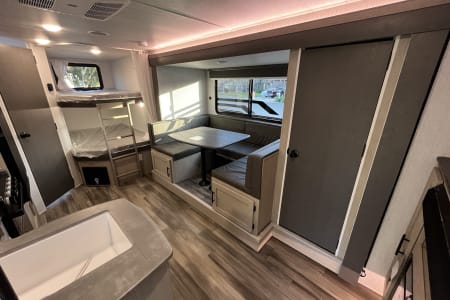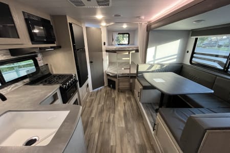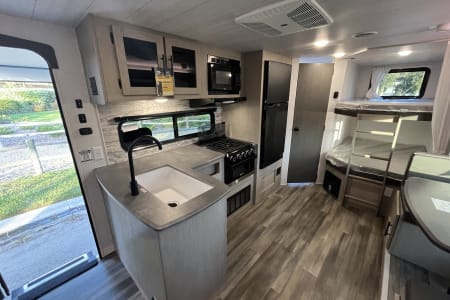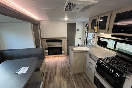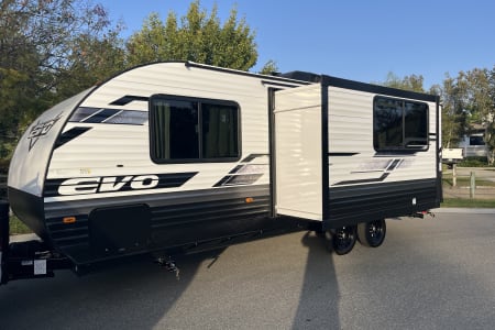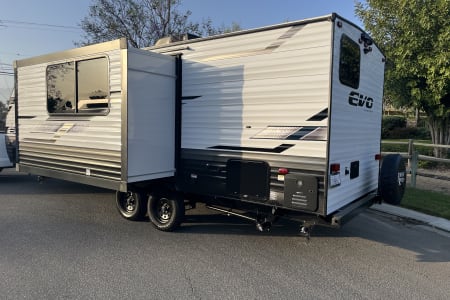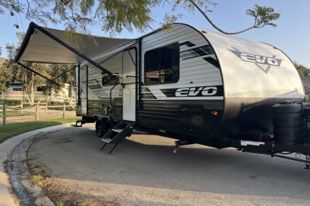 Perfect size trailer that fits the whole family and has plenty of extras, including electric awning, electric tongue, jack and electric stabilizers at all four corners It has everything you need inside and then some!