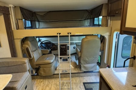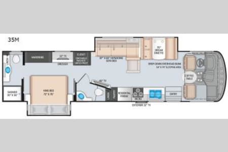 - Sleeps 6–7 Comfortably – King bed, expanding sofa bed, dinette sleeper, drop-down bunk