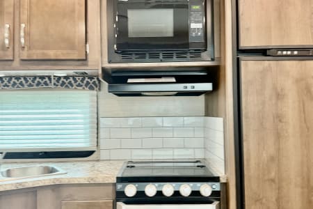 Skip the fast food and whip up your favorite meals right on the road. Our kitchen comes with: