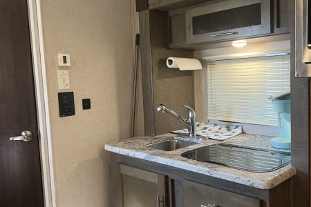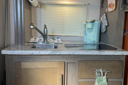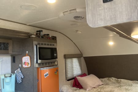 Cozy, comfortable, adventure seeking RPOD has it all in compact size bathroom with a full bathroom, full shower and all kitchen essentials. Enjoy your weekend or weeklong getaway with the comforts of true glamping.