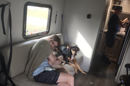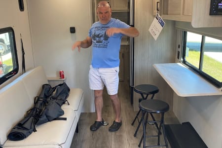 Take your phone on the road. And bring your toys with you. This toy hauler can secure two to three motorcycles or even a large ATV. Hit the road and have some fun.