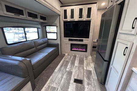 Experience spacious luxury with our 2022 Forest River Sandpiper 3330BH — the perfect setup for family getaways, festivals, or group retreats. This high-end fifth wheel offers the perfect mix of comfort, style, and convenience, giving you all the comforts of home wherever you go.