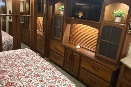 This is your home away from home. Our spacious RV has four slide outs. Real wood cabinets and interior. All you need for you and your family on vacation. We love to travel but with our jobs we do not get to use our RV very often. Rather than it being parked, we want others to enjoy and have as much fun as we do when we go out camping . It has all the amenities you need and more!!! (Delivery Only)