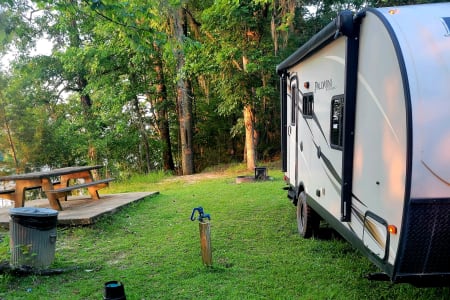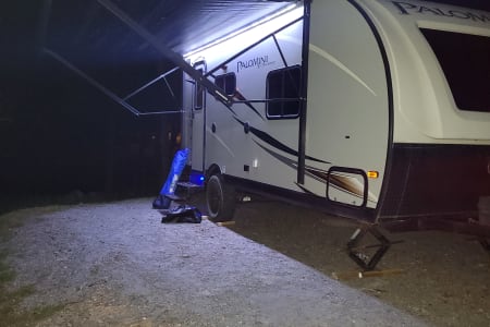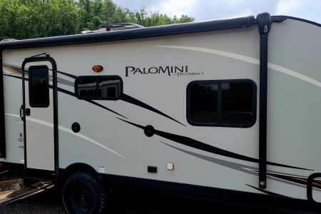 Take a trip in this 21ft mobile executive sweet. This 2018 Forest River Palomino Palomini is equip with all the comforts you'd want for your outdoor excursion (BTW, her name is DEB). First, at 21ft long you can take her just about anywhere. Me and Deb have traveled everywhere from the coastlines of South Padre Island, TX to the woods and lakes in the great state of Alabama. Deb is equip with a cold overhead AC and heater. She's got a nice queen size bed and a soft leather dining seat that converts to another bed. I personally only used her for myself and 1 other guest but you can sleep 3 adults comfortably. Deb is 10ft wide but she has an push button operated extension that will make your dining area a lot more spacious. Deb also has a cozy and private bathroom with a cute toilet, sink, and shower. In the dining area you'll enjoy a complete kitchen that includes an electric/propane grill, kitchen sink, mid-sized fridge/freezer, microwave oven, and plenty of cabinet spaces. Speaking of spaces. Deb has lots of storage room. Starting with cabinets above the queen size bed, his and hers closets on each side of the bed and additional storage at the base of the bed. You also have storage space for your gear on the outside of Deb that is accessible at the front with a key. For your entertainment needs, Deb is equip with a 20inch flat screen smart TV and a Bluetooth ready stereo system located above the grill in the kitchen. You have the option of activating the external or internal built in speakers. You can also have them playing inside/outside at the same time. Additionally, Deb has a rollout awning to shelter you from the Sun or rain. I recently upgraded Deb with blackout window covers for max privacy and custom floors. Like I said, Deb is a very comfortable mobile suite. I really hope you enjoy her.