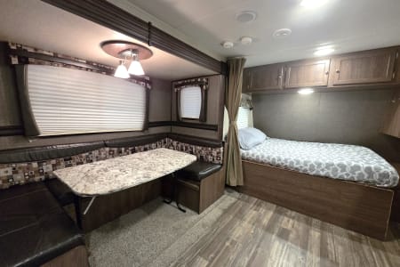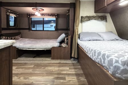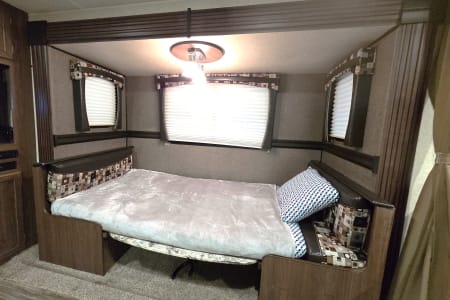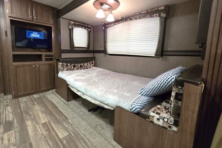 Adventure meets comfort in this 2017 Heartland Pioneer PI RG 28 toy hauler! With room for your gear and all the comforts of home, this unit is ideal for outdoor lovers, families, and festival-goers alike. The spacious garage easily fits ATVs, bikes, or other toys and can convert into extra sleeping or lounge space when parked. Inside, you’ll find a fully equipped kitchen, cozy dinette, private bathroom, and comfortable sleeping areas for a relaxing stay after a day of fun. Easy to tow and well-maintained, this Pioneer makes every trip smooth, comfortable, and adventure-ready.