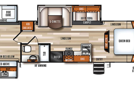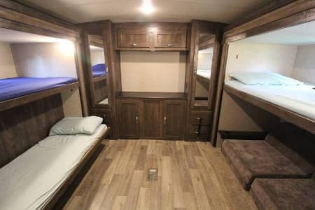 - Sleeping capacity: 10 (with quad bunkhouse, queen master bed, a transformable sofa, and a dinette bed conversion)