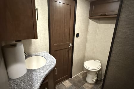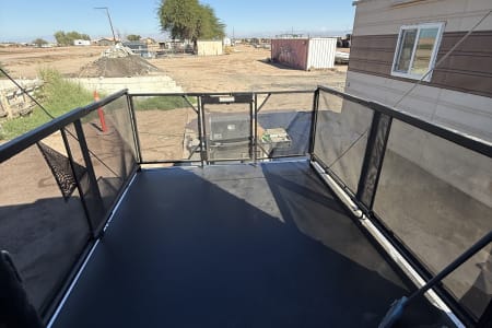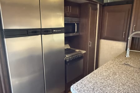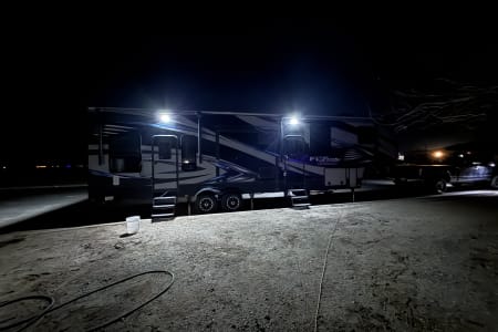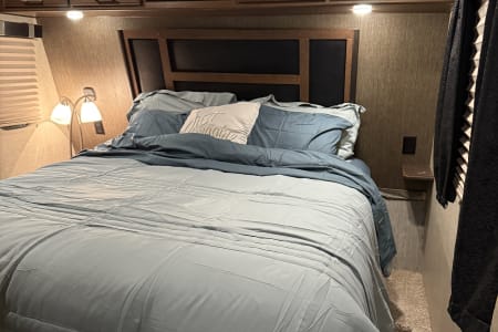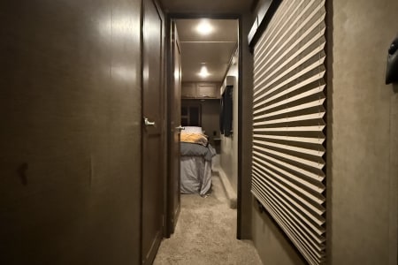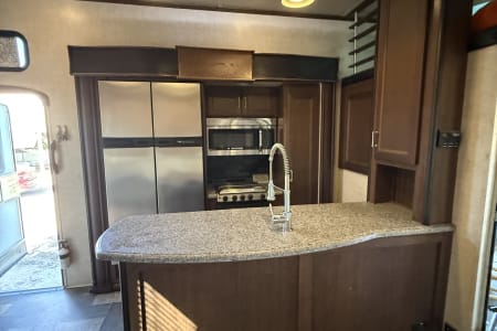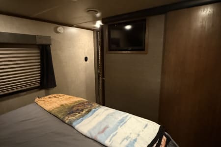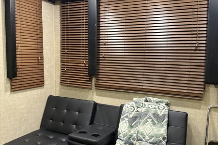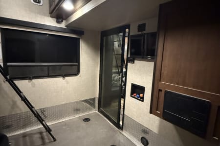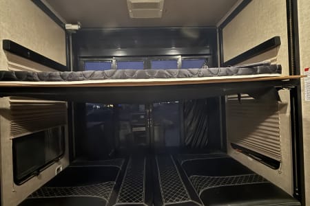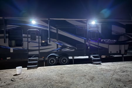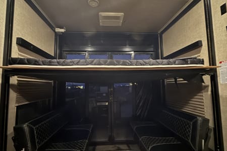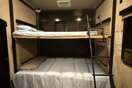 5TH WHEEL TRAILER WITH SEPARATE GARAGE. SLEEPS 8 PEOPLE COMFORTABLY BETWEEN THE COUCH, QUEEN SIZE BUNKS, AND FULL BED IN THE FRONT. WE DO COMPLETE SET UP AND TEAR DOWN SO ALL YOU HAVE TO DO IS SHOW UP AND ENJOY YOUR STAY!