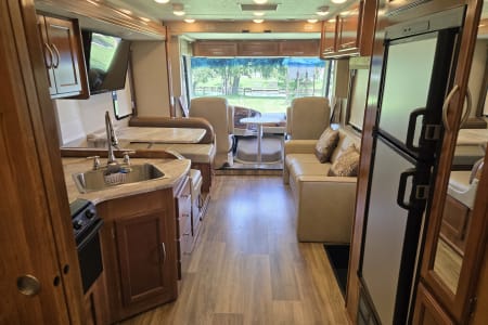 Make memories with the family. Visit fun and interesting places in the comfort of your RV with sleeping for six adults and two children. The RV is equipped with sumo springs back and front a steering stabilizer and heavy duty sway bars , so it drives like a dream. It has three TV's one over the picnic area, one in the rear bedroom and one outside the RV. It has a king size bed in the rear bedroom for utmost comfort.