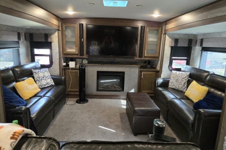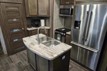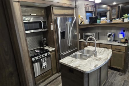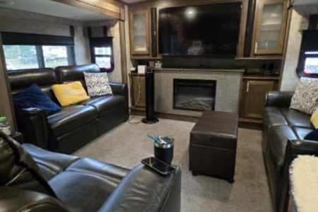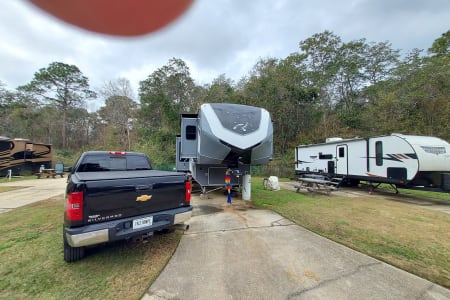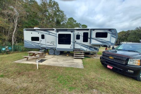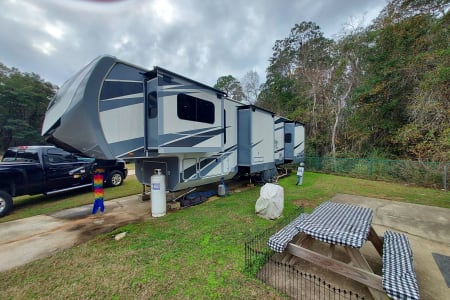 Highland Ridge Open Range RV rental serving Gulf Shores, Orange Beach, and the Alabama Gulf Coast. This spacious, residential-style camper features a private master bedroom with queen bed, large refrigerator and full kitchen, generous storage, and modern upgraded interior finishes. Perfect for Gulf State Park stays, beach vacations near the Gulf of America, and long weekend getaways. Comfort, space, and convenience just minutes from the beach.