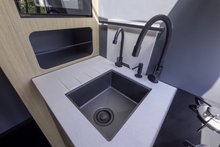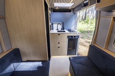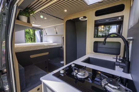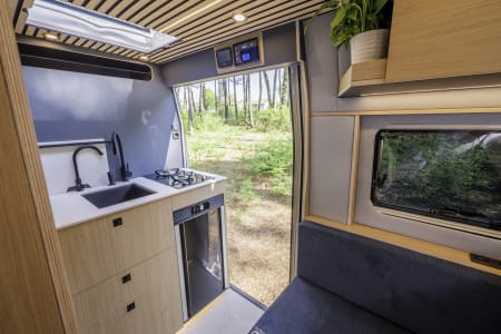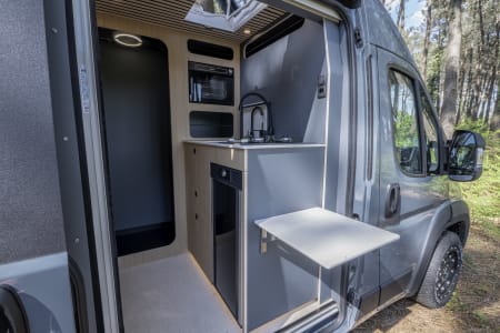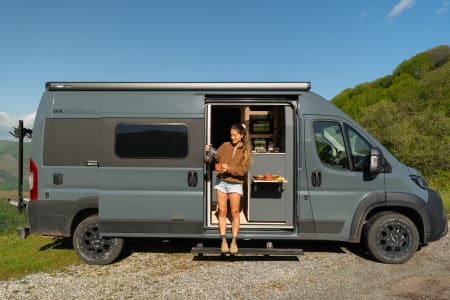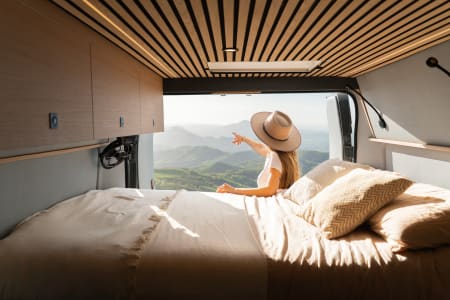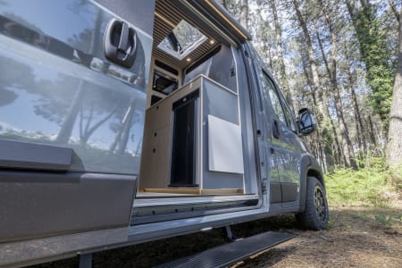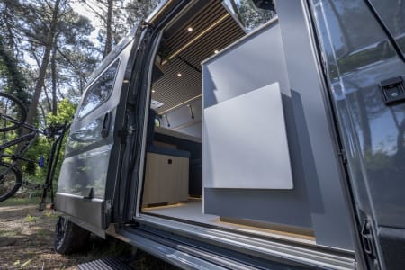 PYLA est le premier véhicule de série signé Van Designers, ils ont cassé les codes du standard des véhicules de loisirs avec une cabine de conduite complètement séparée pour un espace de vie confortable et agréable, un petit cocon pour vivre de belles aventures.