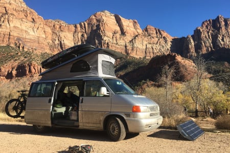--Renters are insured through Outdoorsy, please contact them with specific questions about coverage. Outdoorsy will only insure renters age 25 and older. You can add on their road side assistance for an additional fee if you don't have your own AAA membership. Each booking requires a $500 deposit and renters are responsible for mileage overages, cleaning fees, damage to the pop top canvas, scrapes, scratches, windshield dings, and anything else that negatively impacts the van or accoutrements during your trip. We are happy to take before and after pictures.
